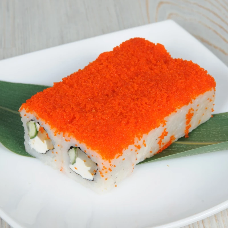 рис, сыр кременте, коп.кальмар, огурец, нори, тобико оранжевая.