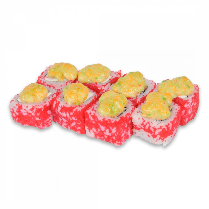 рис, нори, сыр, креветка, масага оранжевая, хелманз, масага зеленая и красная.