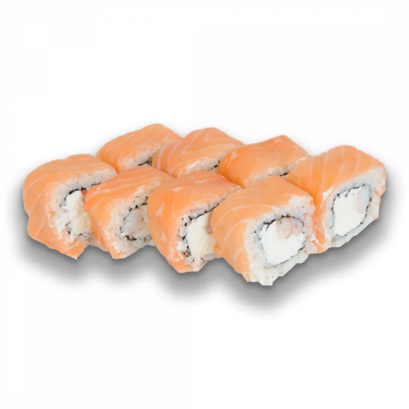 рис, нори, креветки, сливочный сыр, лосось.